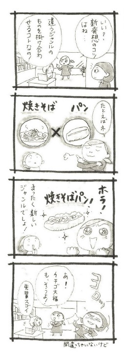 発想力は、無から生み出す場合と、あるものから作り出す場合の2つの方法があると書きましたが、私が最も得意としているのは、違う分野同士の掛け算をすることで新しい企画を作り出していく方法です。私も発想法に関する書籍はたくさん読んだのですが、いろいろな方法を試していくうちに、自分の得意パターンはこれだっ! と思い、以来発想法で行き詰まったらとりあえずこの方法でがんばってみることにしています。みなさんも得意パターンを早く見つけられるように、いろいろと挑戦してみてくださいね。