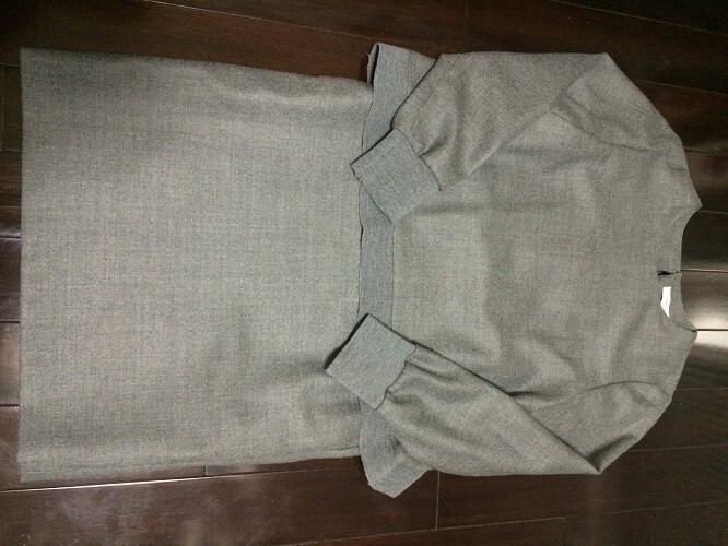 妊娠前からよく着ていた服で、色違いを何枚か持っています。ウールですが、ストレッチ素材で、しかもお腹のところに余裕があるので、マタニティが必要となったときも、実は結構使える服だと分かりました。